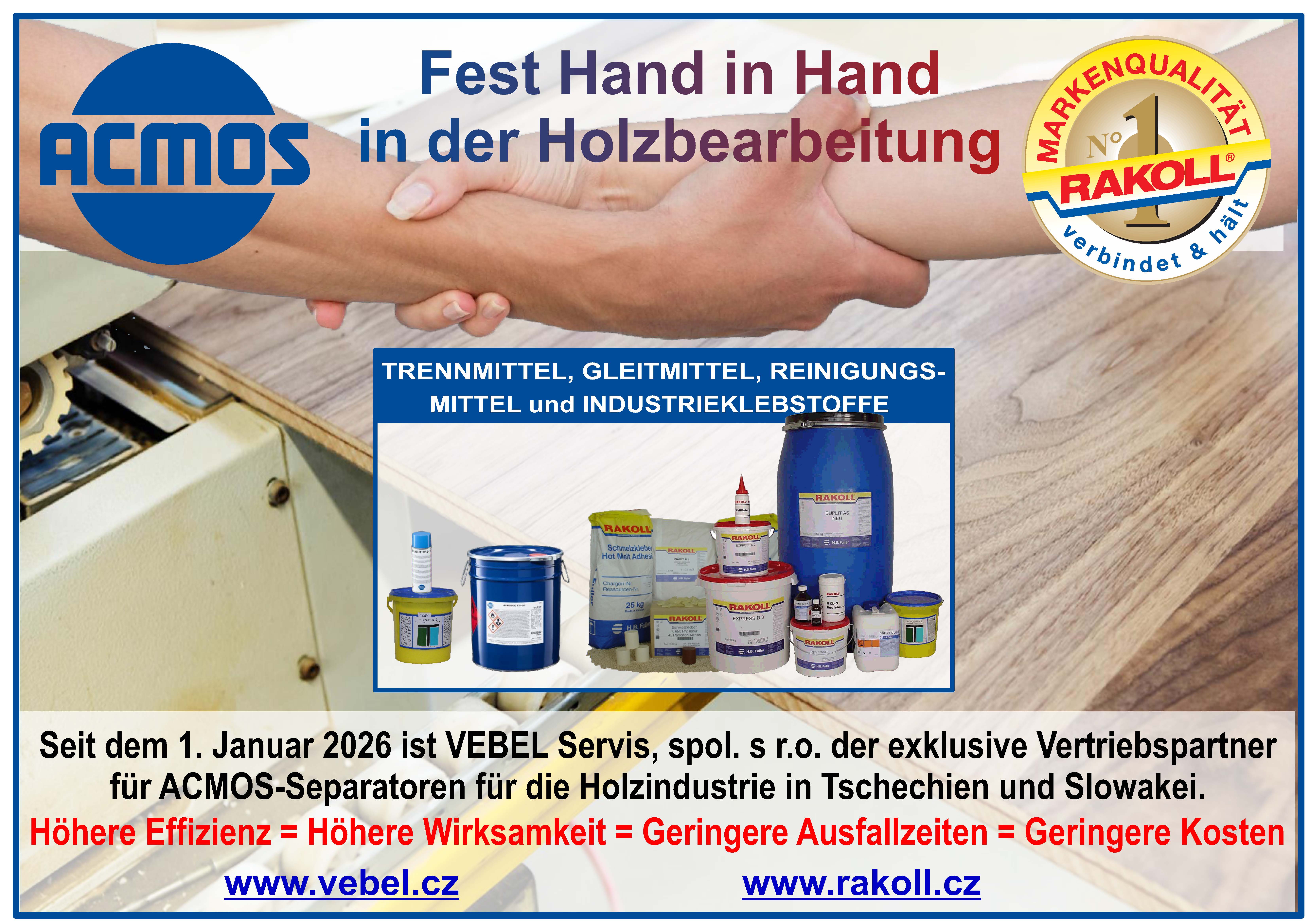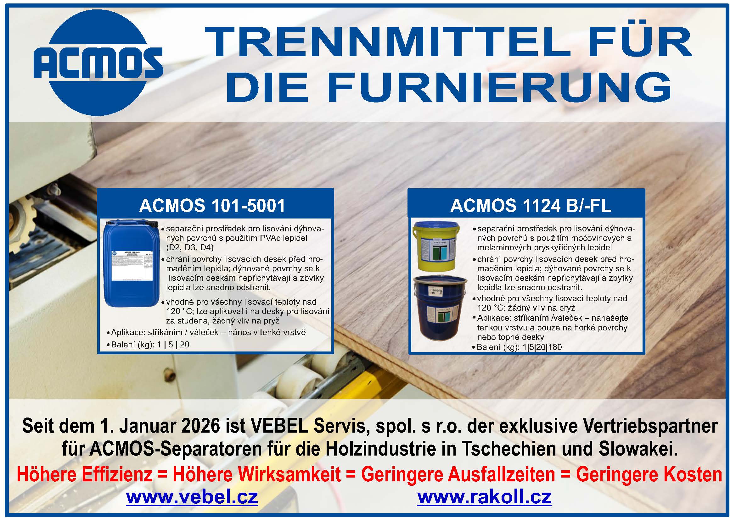 ist seit dem 1. Januar 2026 exklusiver Vertriebspartner von ACMOS-Produkten für die Holzverarbeitungsindustrie in Tschechien.